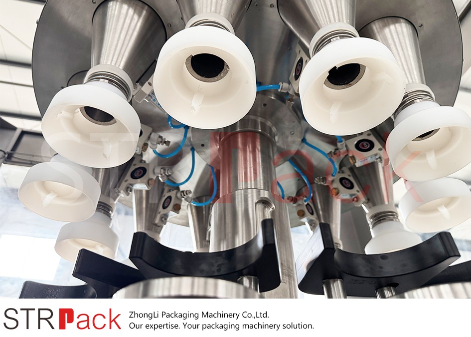 The STRPACK 12-head rotary powder filling machine is designed for high-speed and continuous filling of powders and fine granules into bottles.